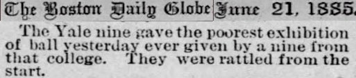 OF JOHN GENNANTONIO'S 1885 HARVARD YALE BASEBALL