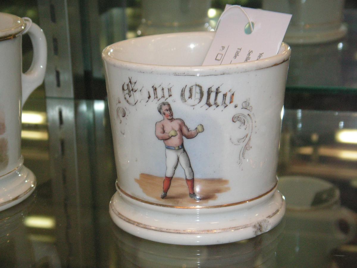 occupational shaving mugs that include eight sports ones to be auctioned