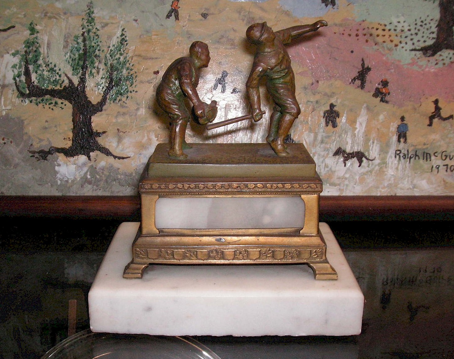 fantastic little 5 1/2" tall white metal baseball statue