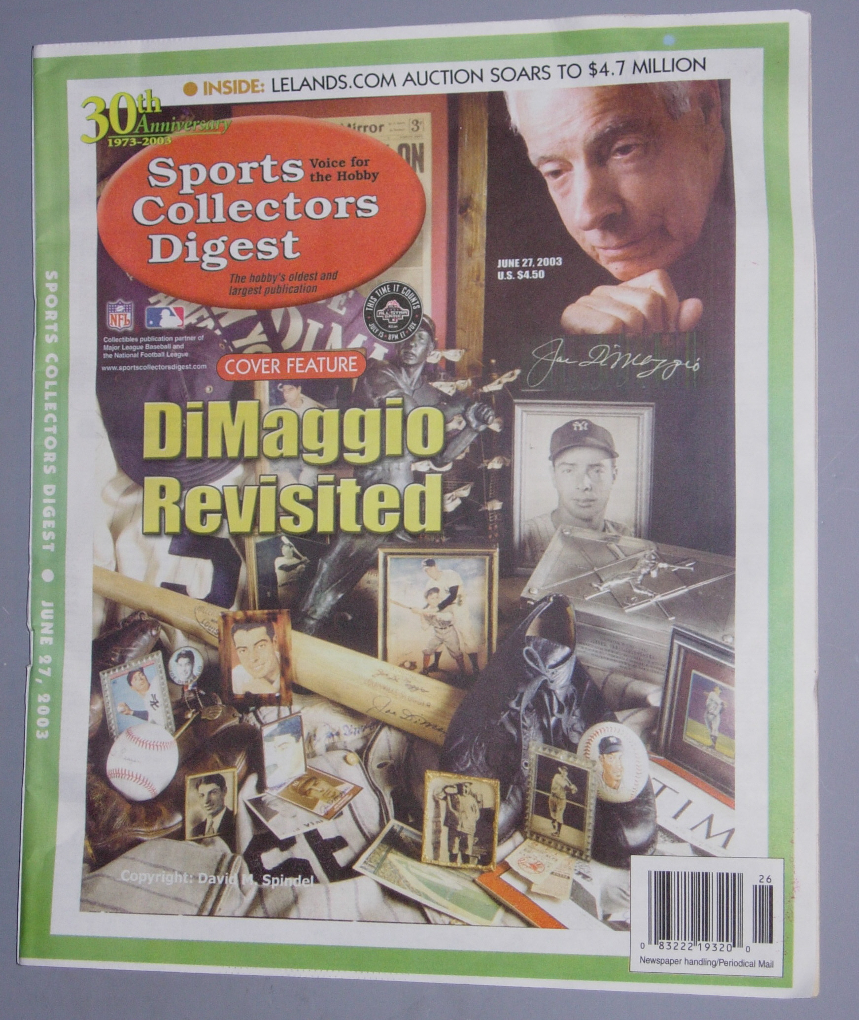 sub-front cover of the June 27th 2003 issue of Sports Collectors Digest shows an assortment of Joe DiMaggio memorabilia that reminded me of the Joe DiMaggio items I have. As a