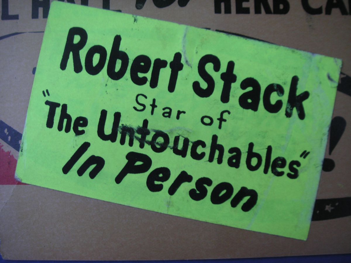 sticker announcing actor Robert Stack of "The