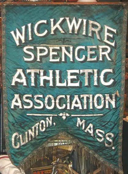 . Next in they’re arsenal was a great circa 1880’s silk banner for the Wickwire Spencer Athletic Association of Clinton Mass., great teal color, very 19th century archaic, striking, 24 ľ” wide by 35 “ tall, $600.00