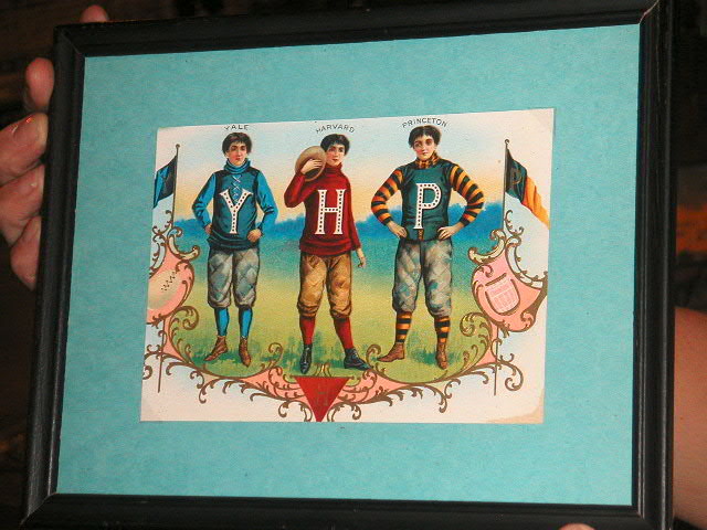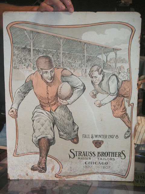 catalog. The pieces showed an 07’ era football scene of a ball carrier in a union suit being pursued, bold and striking, 21” tall by 16 Ľ” wide, $250.00
