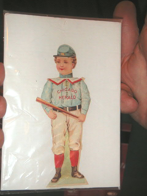 carrier, again with stiff arm pose, pretty rare, don’t recall ever seeing another, appeared to be chrome plated, 5 ľ” tall, $325.00
